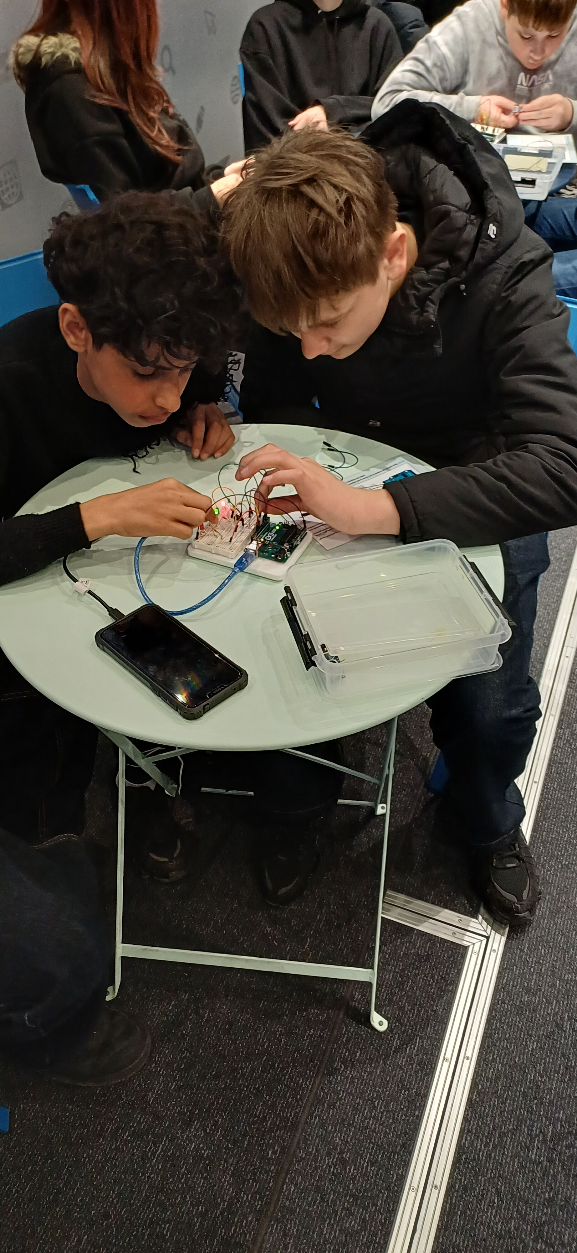 Im Inneren des Trucks konnten die Jugendlichen an verschiedenen Stationen moderne Technologien selbst ausprobieren. Von Codierungen über künstliche Intelligenz bis hin zu Robotern – Hightech wurde hier greifbar und verständlich gemacht. In angeleiteten Workshops hatten die Schülerinnen und Schüler außerdem die Möglichkeit, ihre eigenen Fähigkeiten und Interessen zu erproben.